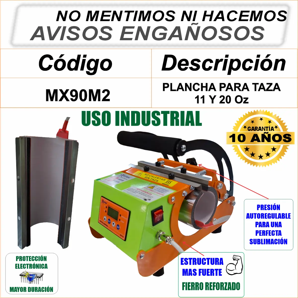 MX90M2 PLANCHA PARA TAZAS Y TERMOS 2 RESISTENCIAS 11 Y 20Oz 10 AÑOS DE GARANTÍA