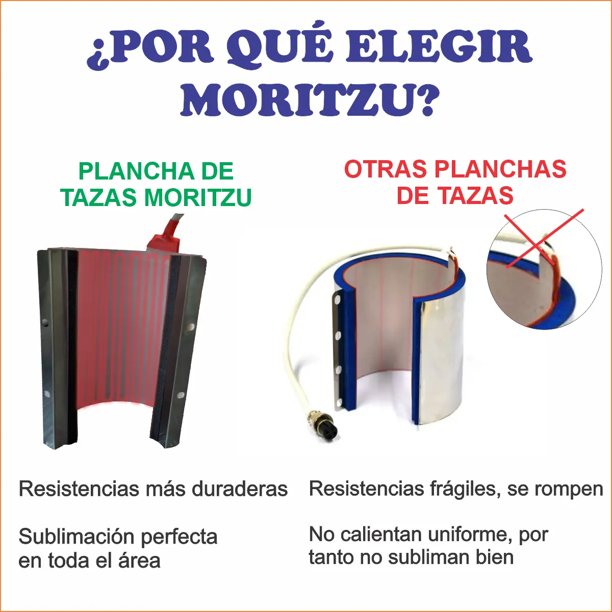 * 1 Resistencia recta para tazas de 11Oz con goma silicona de retención de calor para una excelente sublimación.