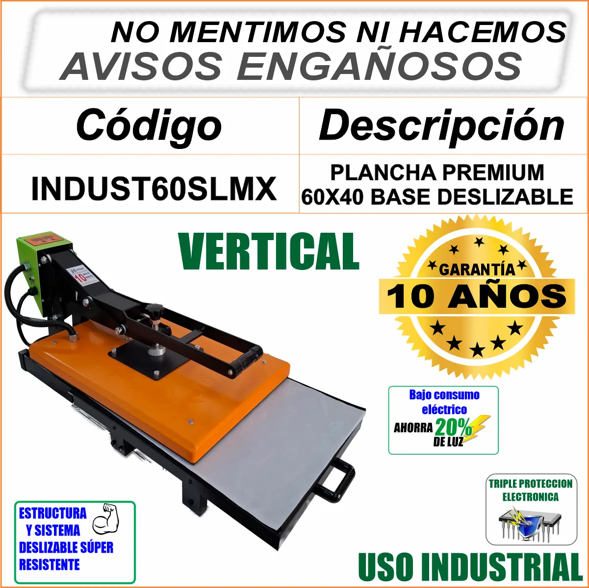 INDUST-60SLMX PLANCHA DE SUBLIMACIÓN 60X40 VERTICAL 10 AÑOS DE GARANTÍA